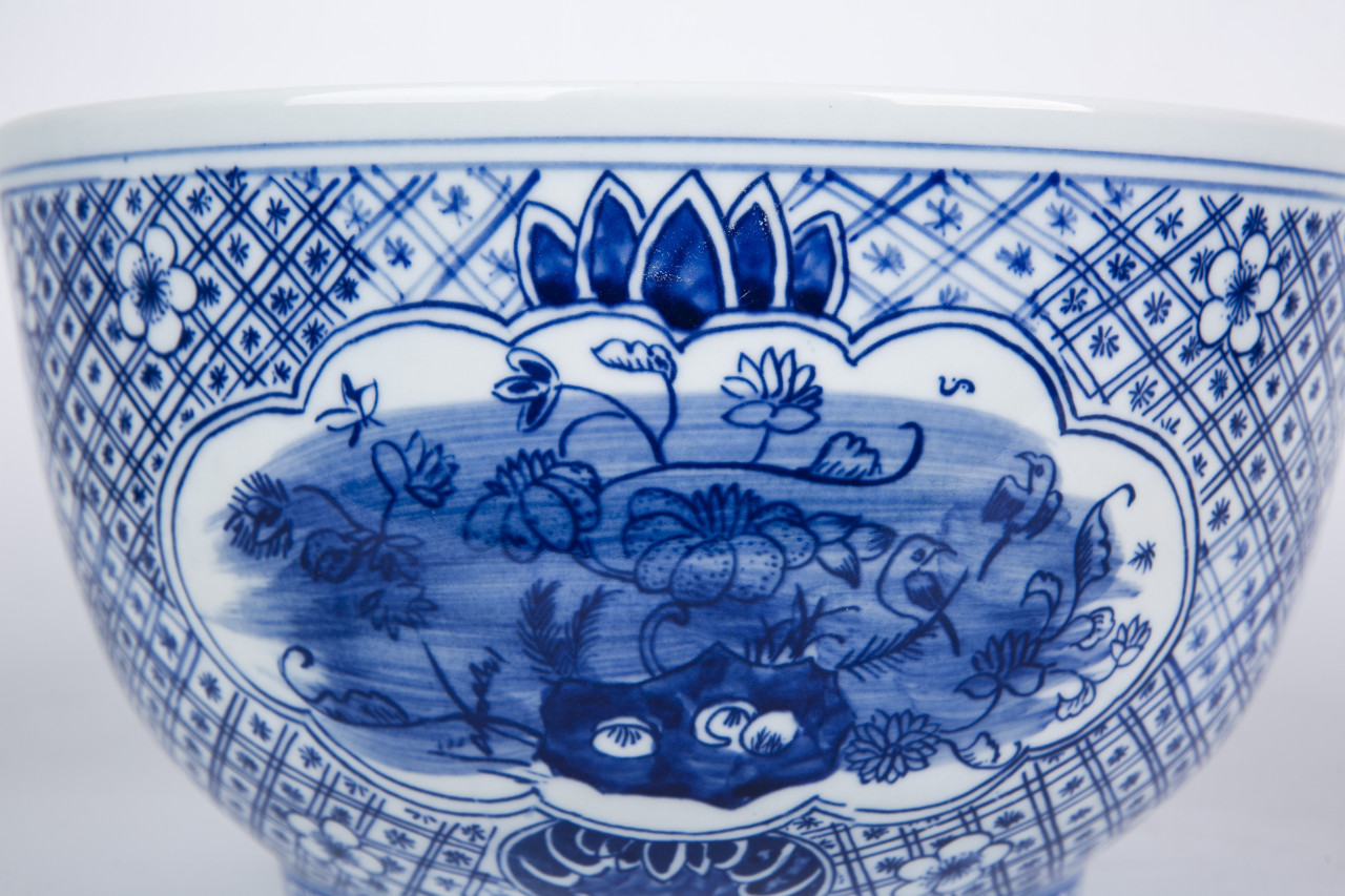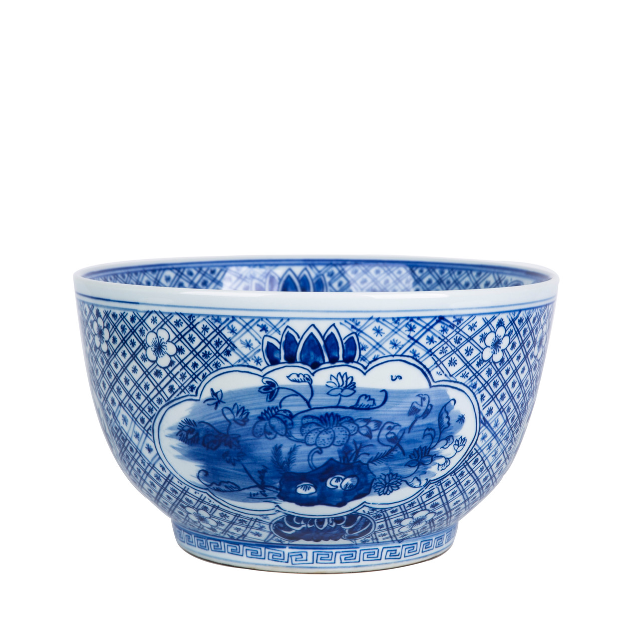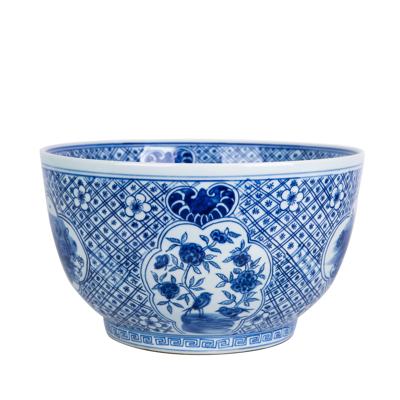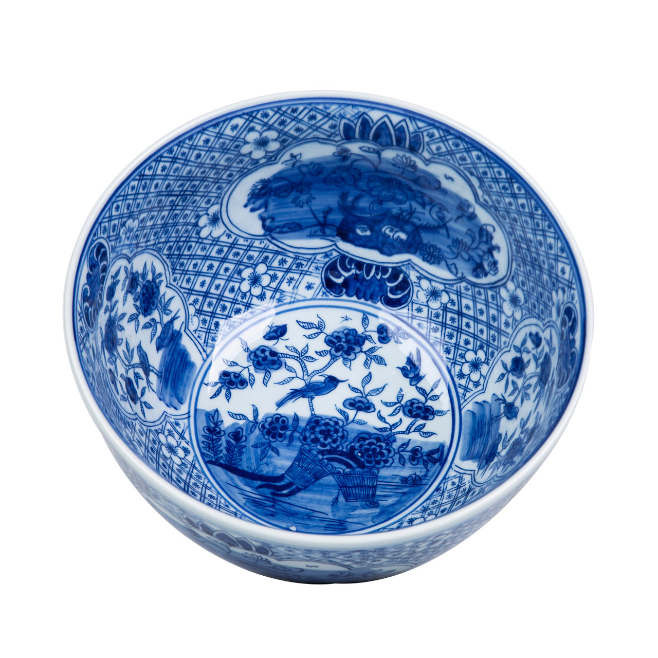 Blue And White Medallion Flower Bird Bowl