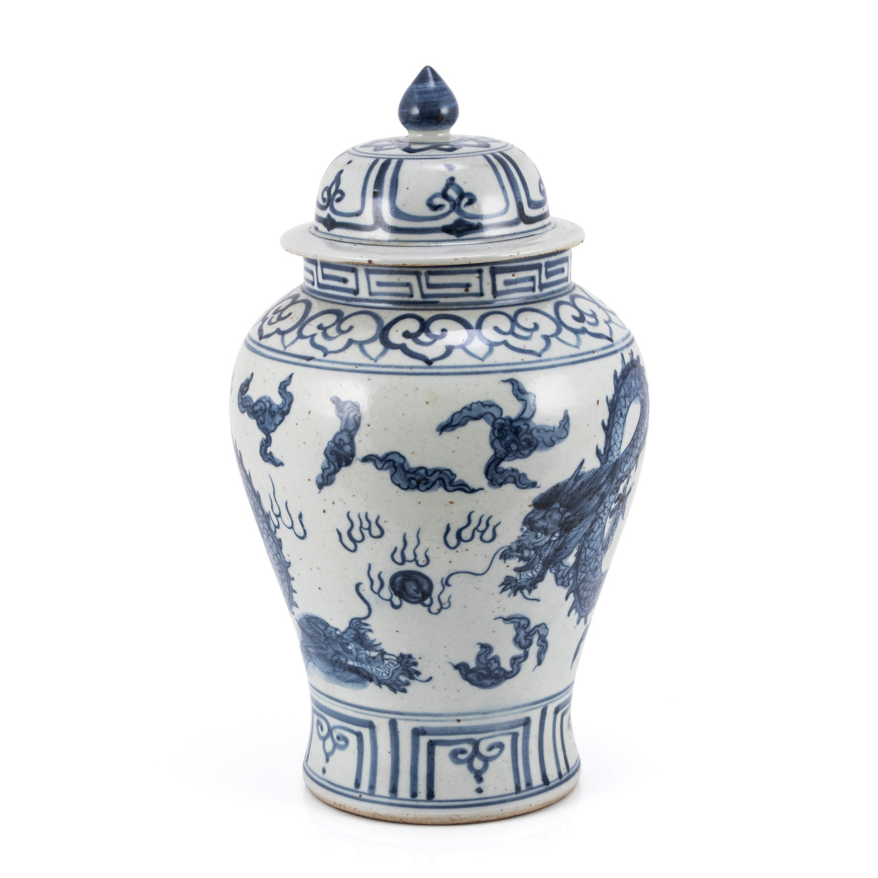 Blue And White Small Porcelain Temple Jar With Dragon