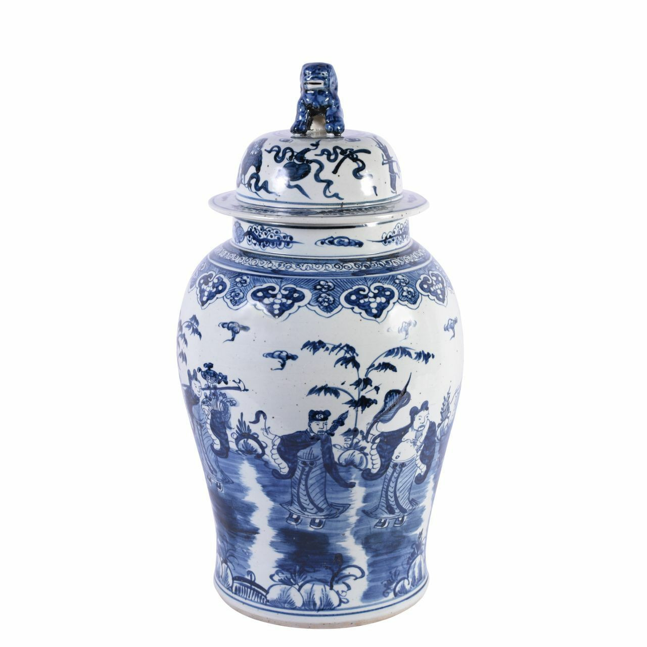 Blue & White Temple Jar W/ 8 Immortals Motif