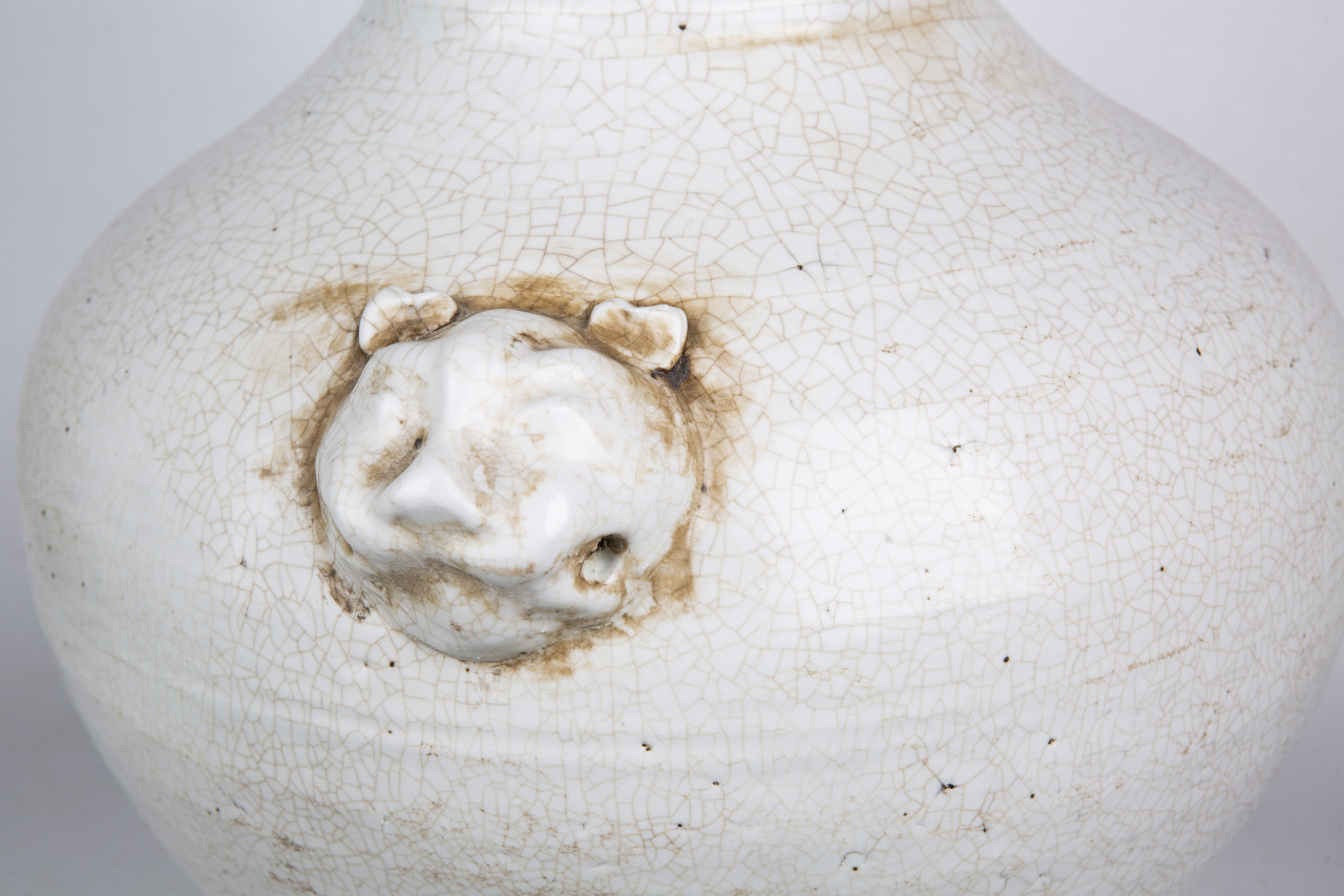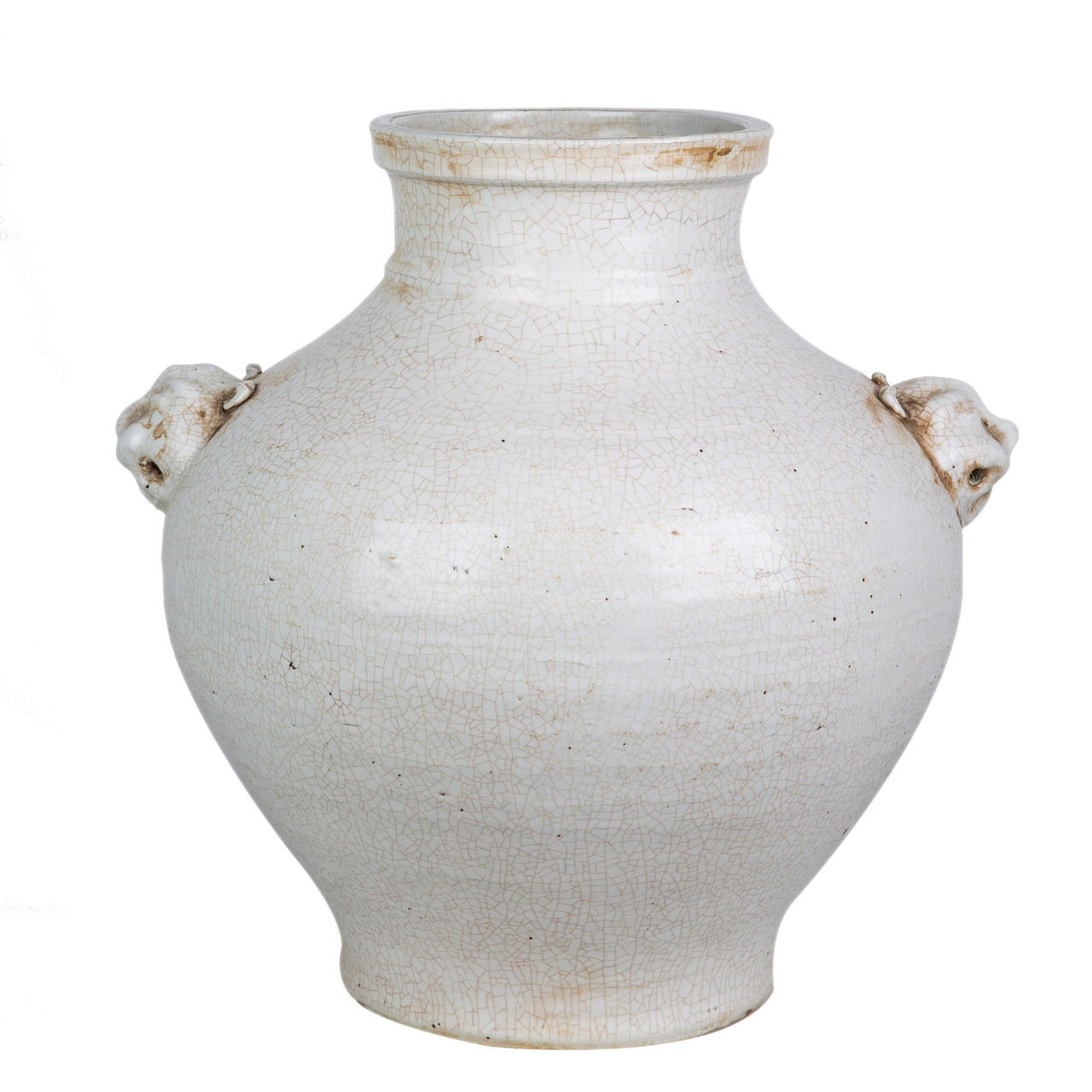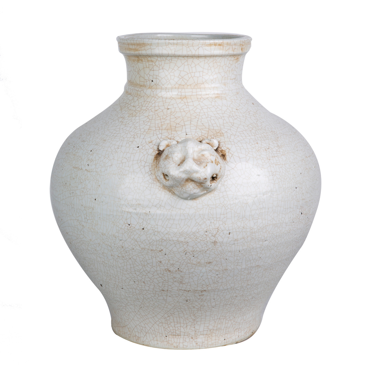 Double Lion Head Handle Jar White Crackle
