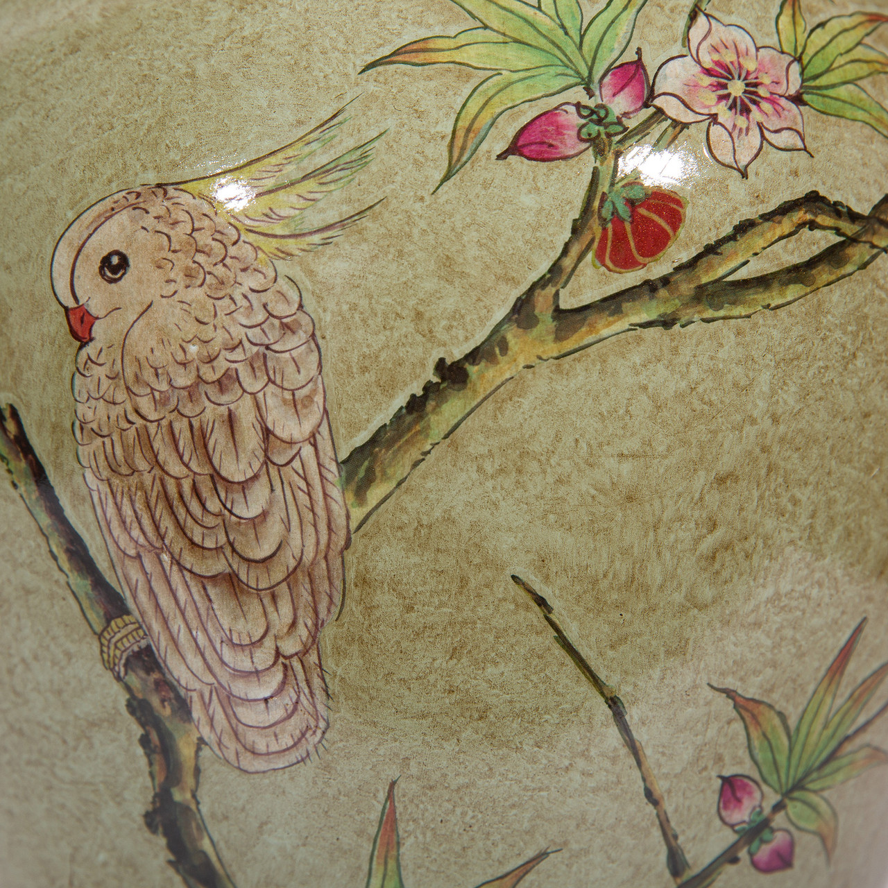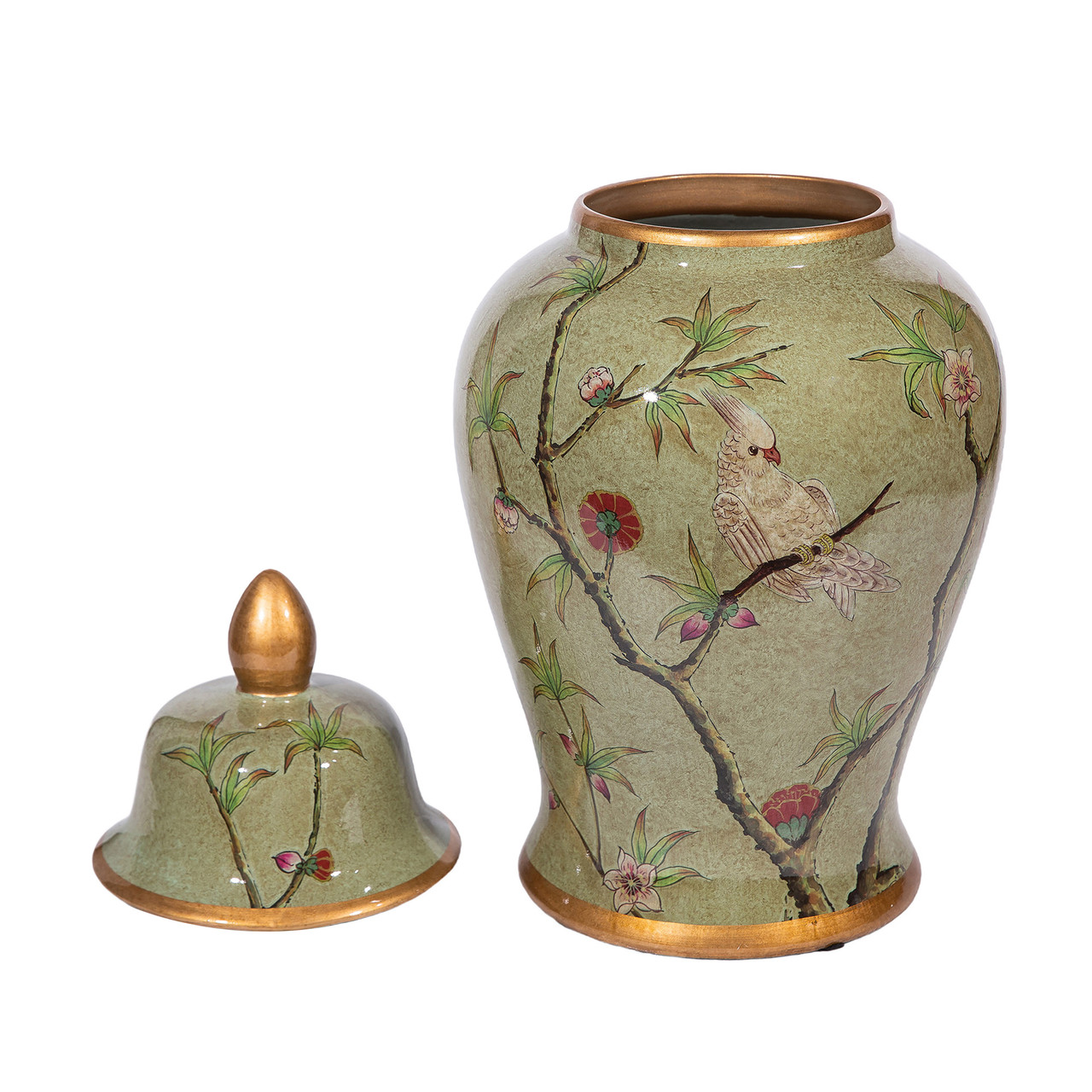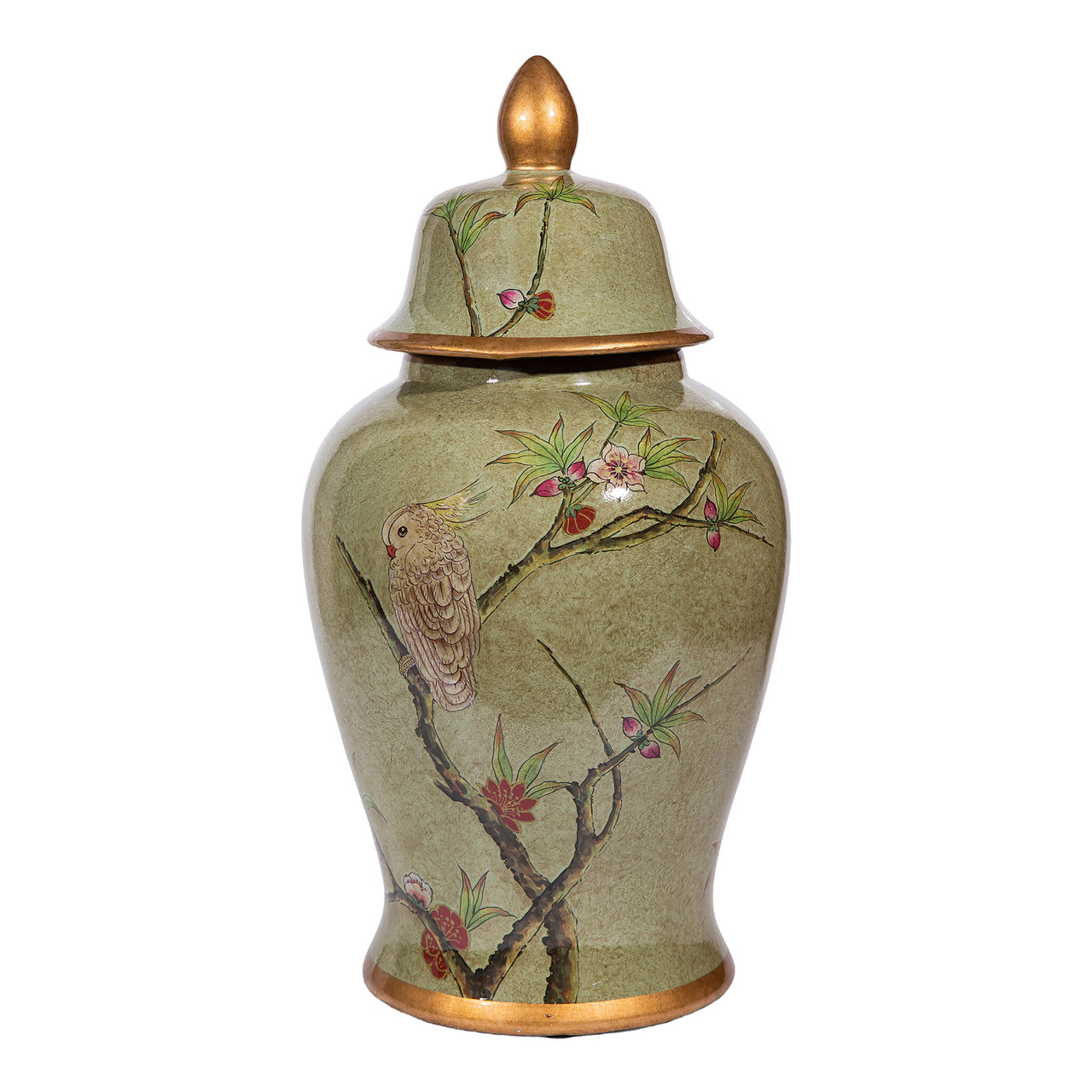 Green Gilt Parrot Temple Jar