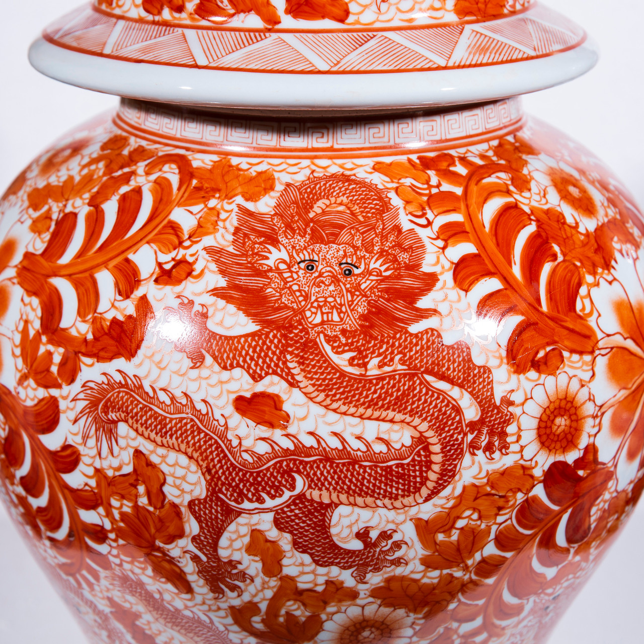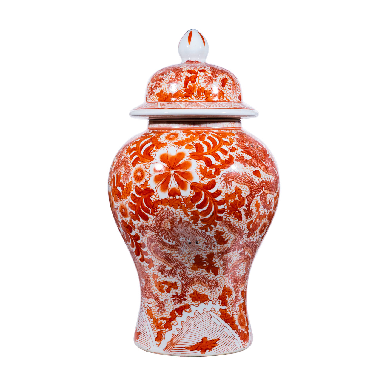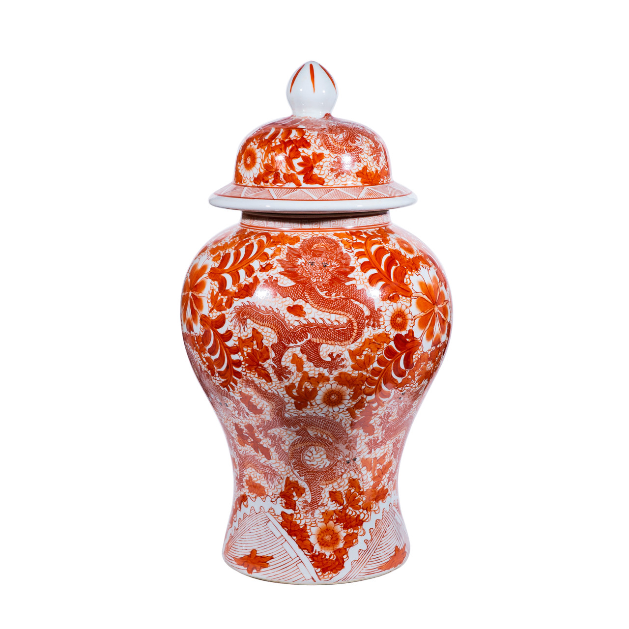 Orange Temple Jar W/ Dragon & Floral Motif – Large