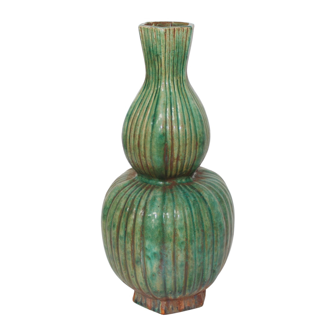 Speckled Green Hexagonal Fluted Gourd Vase