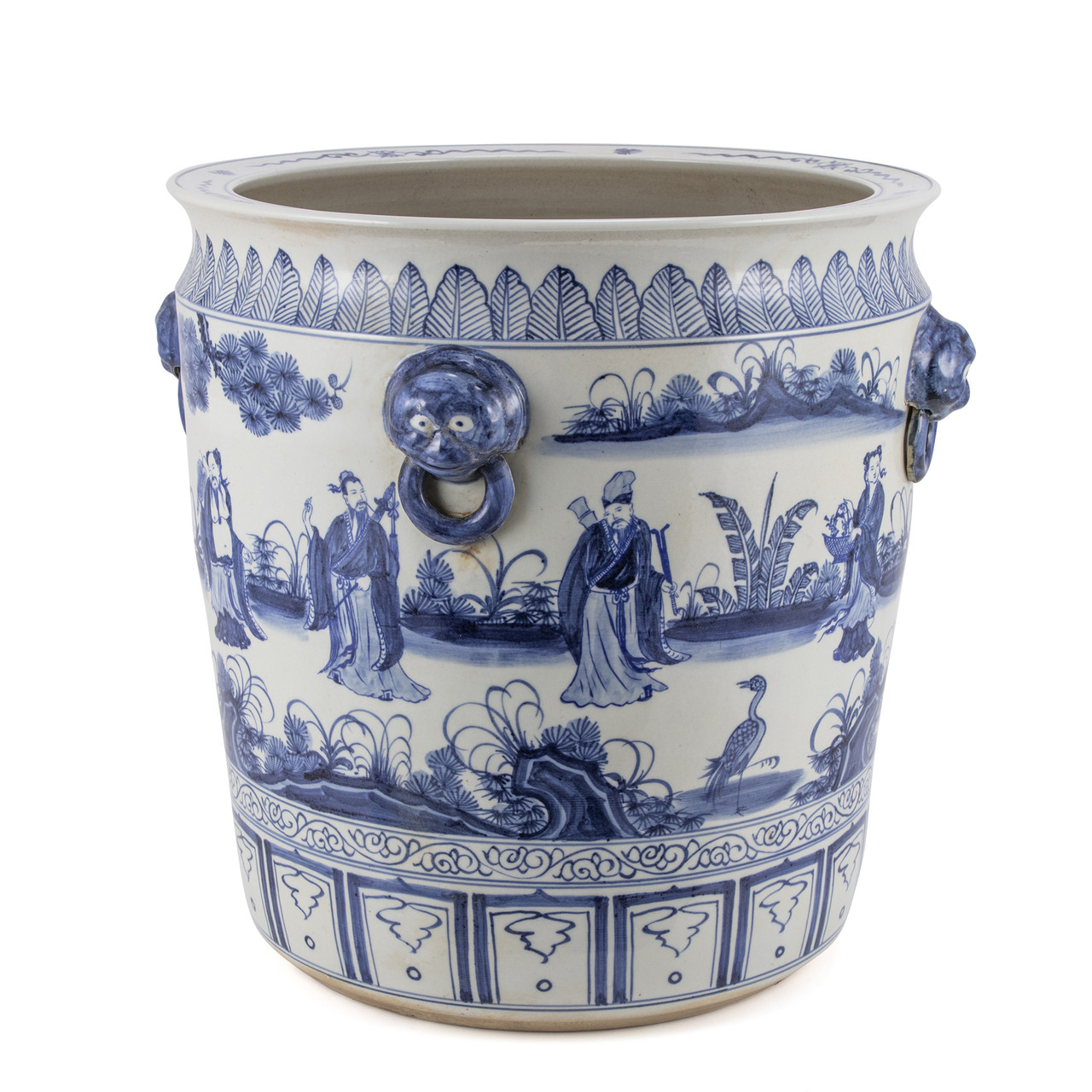 Blue And White Porcelain Eight Immortals Planter With Lion Handle