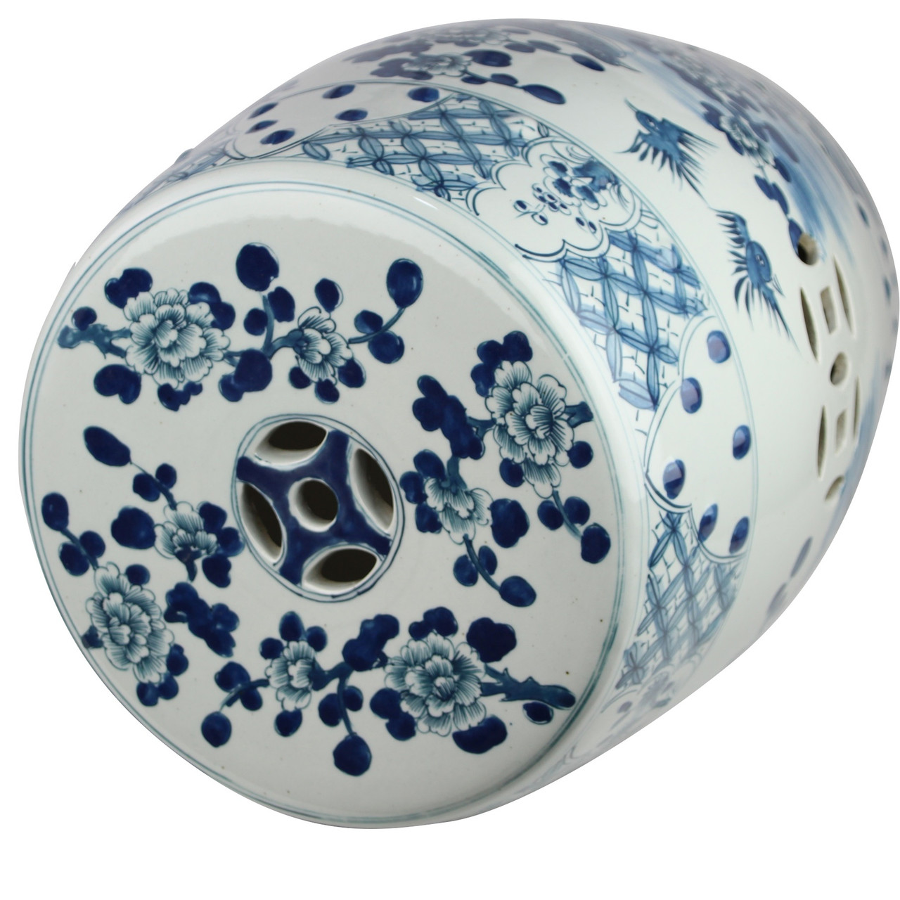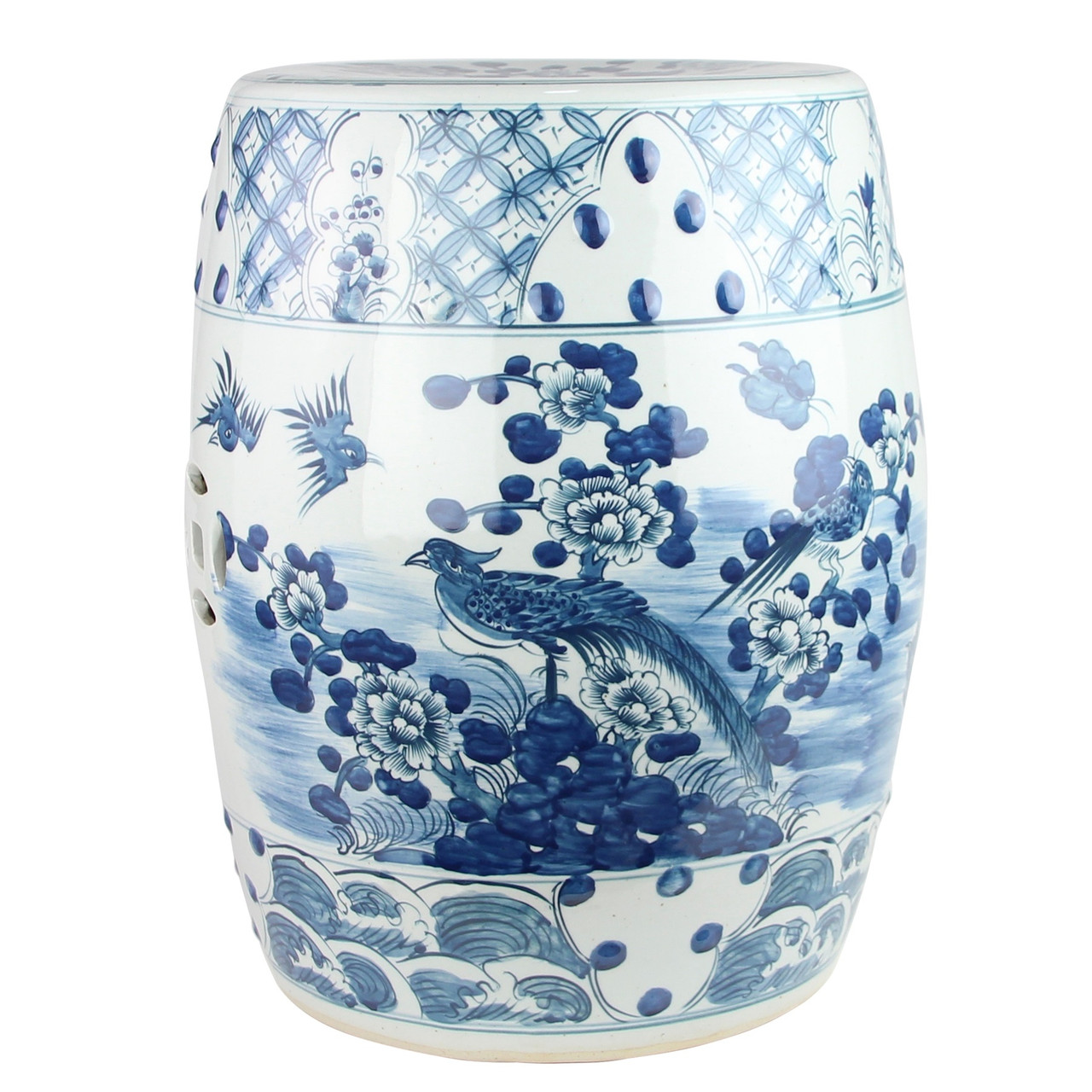 B&W Village Flower Bird Garden Stool