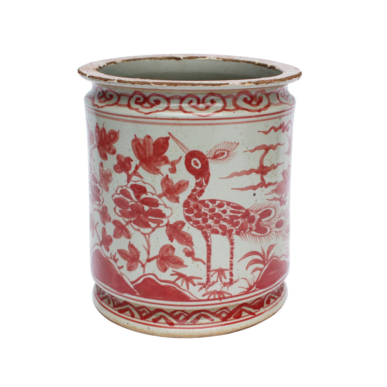 Underglaze Red Orchid Pot Bird Motif