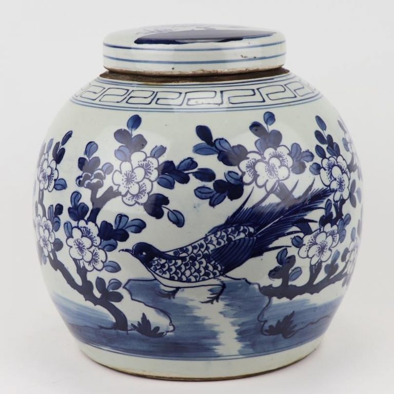 Blue And White Ming Jar Long-tailed Bird – 2 Sizes