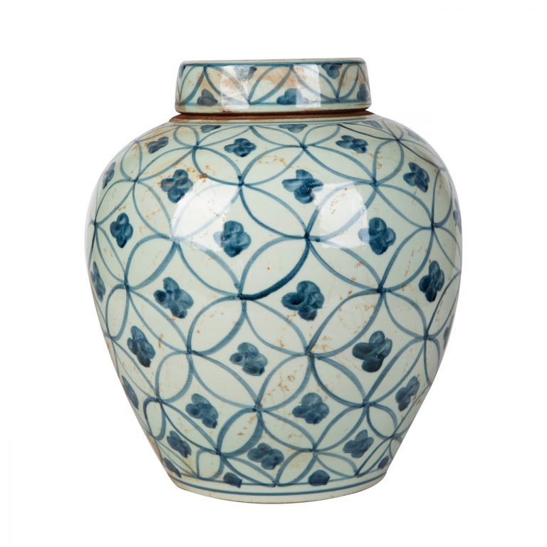 Blue And White Ming Jar Coin Motif