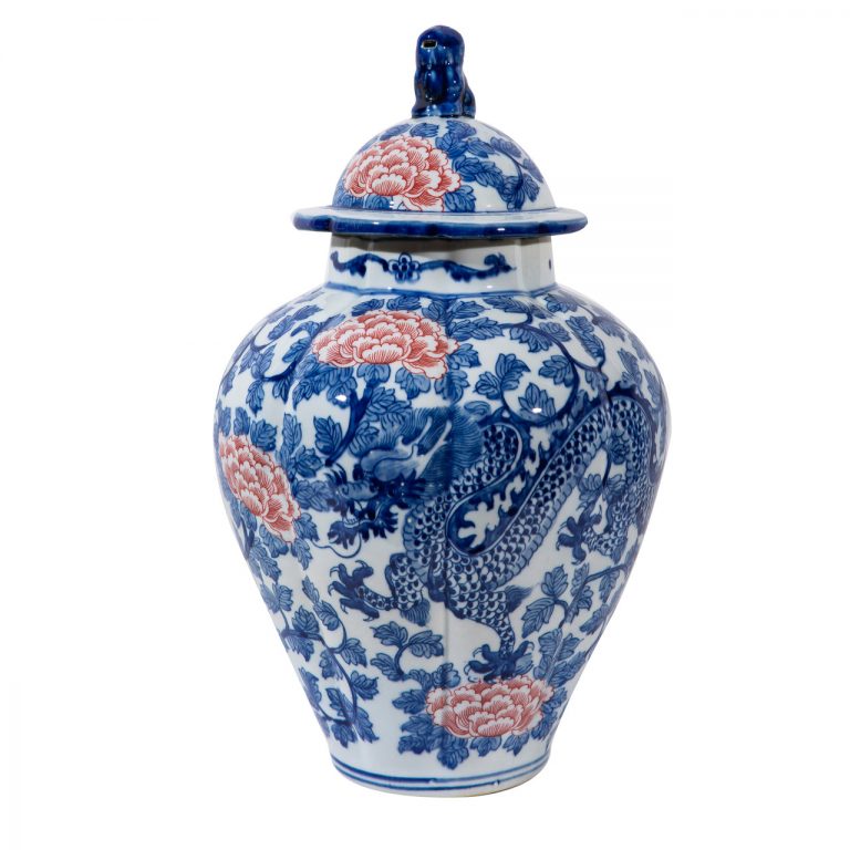 Red Peony Dragon Fluted Jar Small