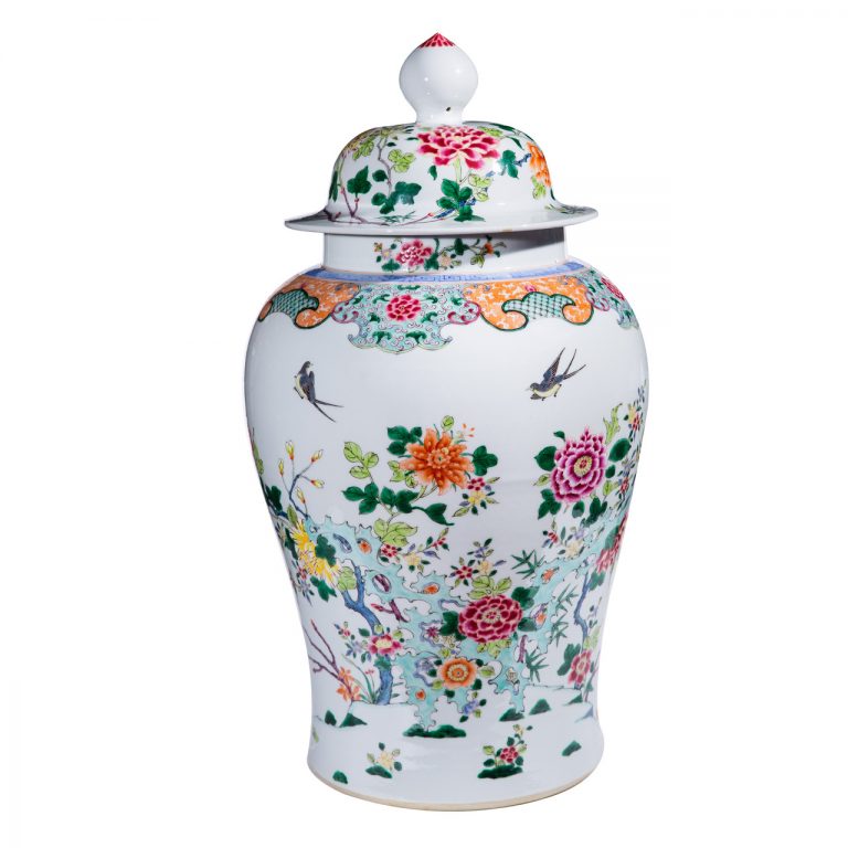 Chinoiserie Floral Temple Jar Multi-Colored Large