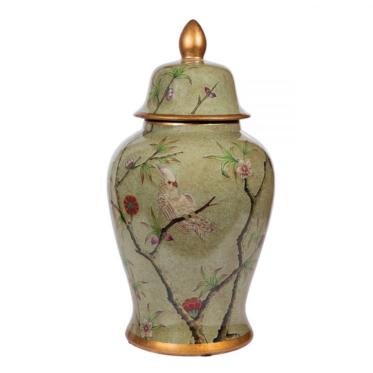 Green Gilt Parrot Temple Jar