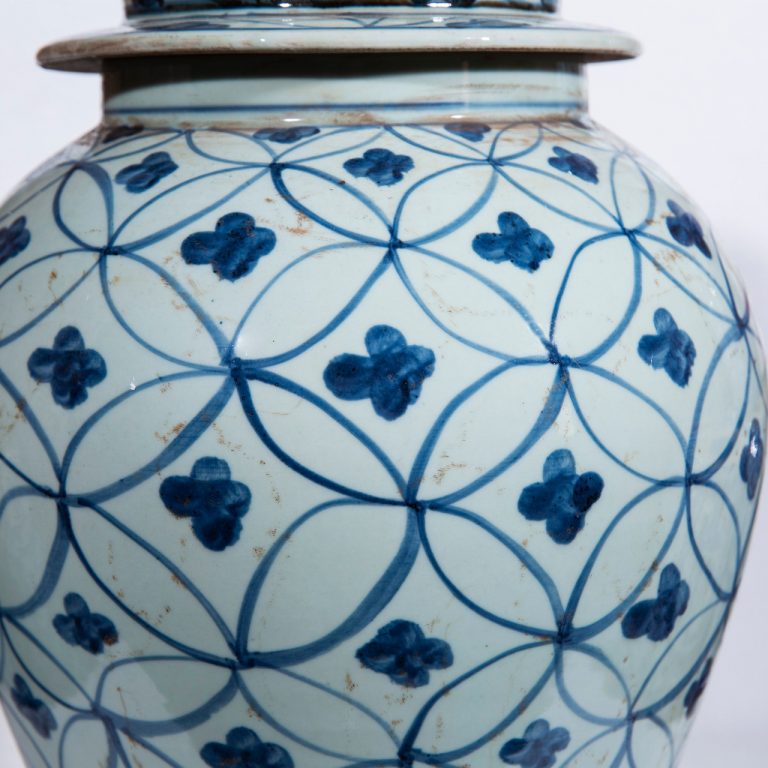 Blue & White Coin Flower Temple Jar – 2 Sizes
