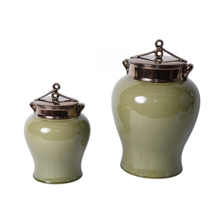 Green Crackle Porcelain Jar With Bronze Glaze Lid – 2 Sizes