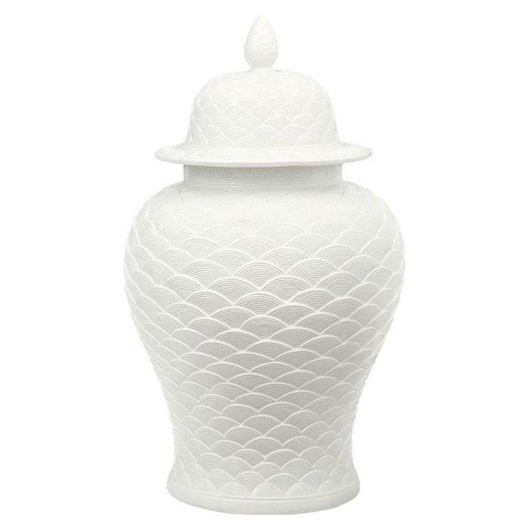 Blue And White Porcelain Temple Jar Banana Leaf Motif