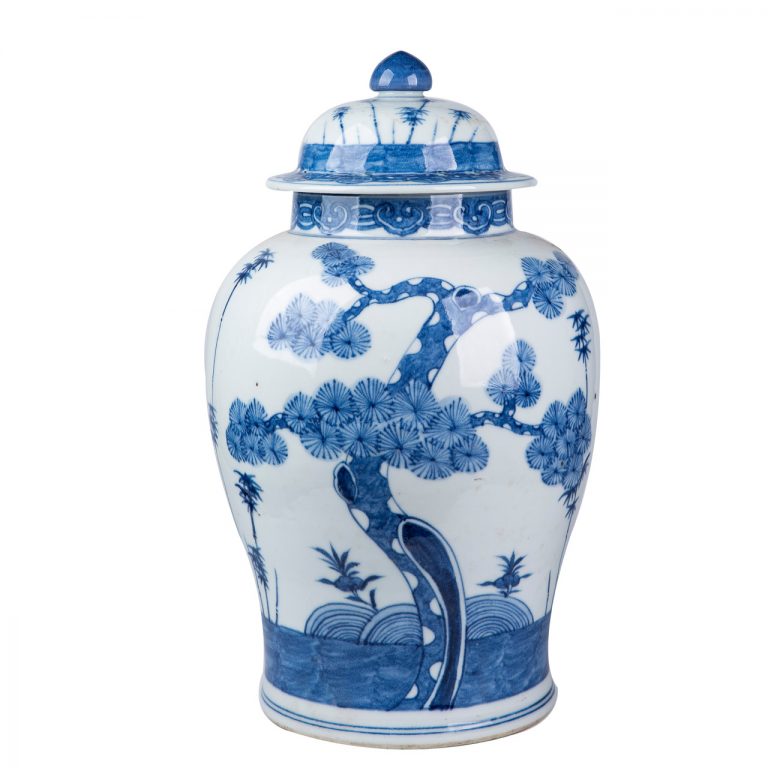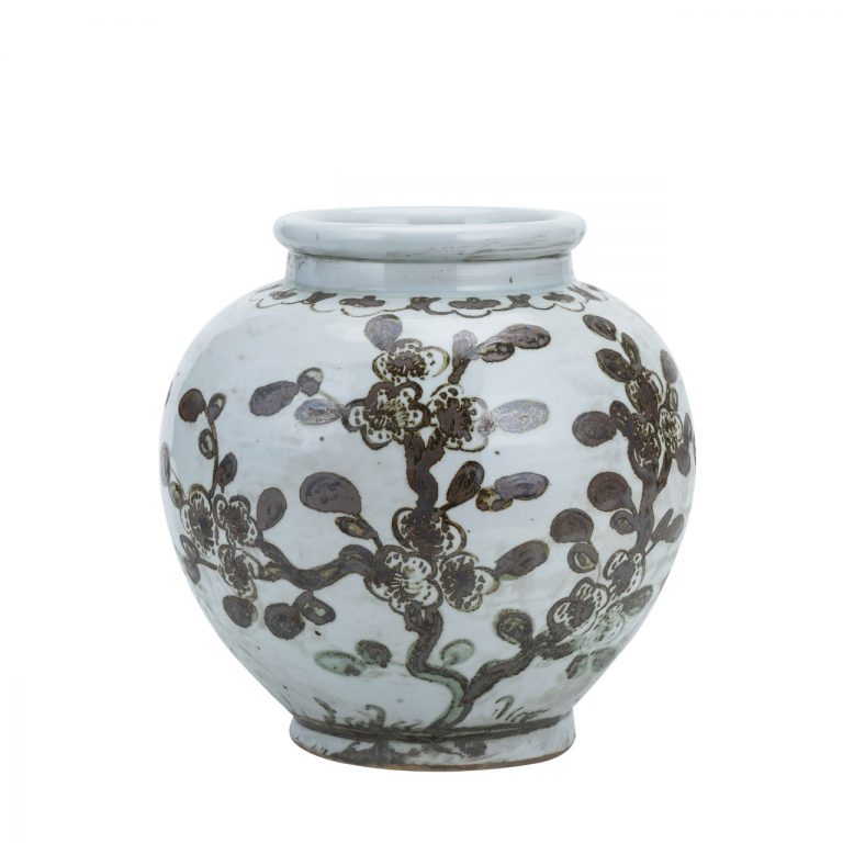 Vintage Temple Jar Plum Lily Pad Motif – 2 Sizes
