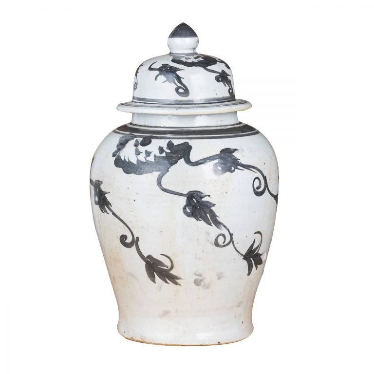 Black Temple Jar Vine Motif