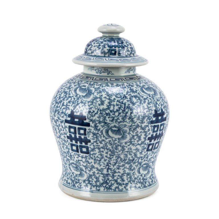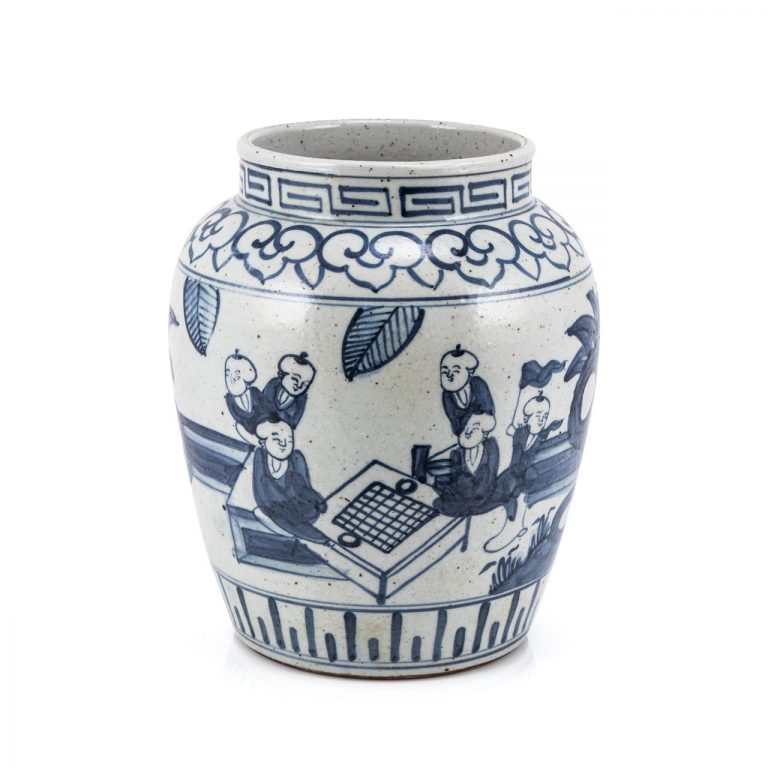 Blue & White Temple Jar W/ 8 Immortals Motif