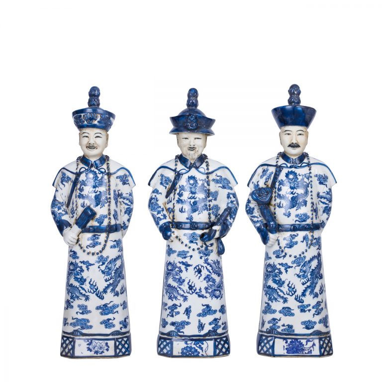 Blue And White Sitting Qing Emperors of 3 Generations – Set Small