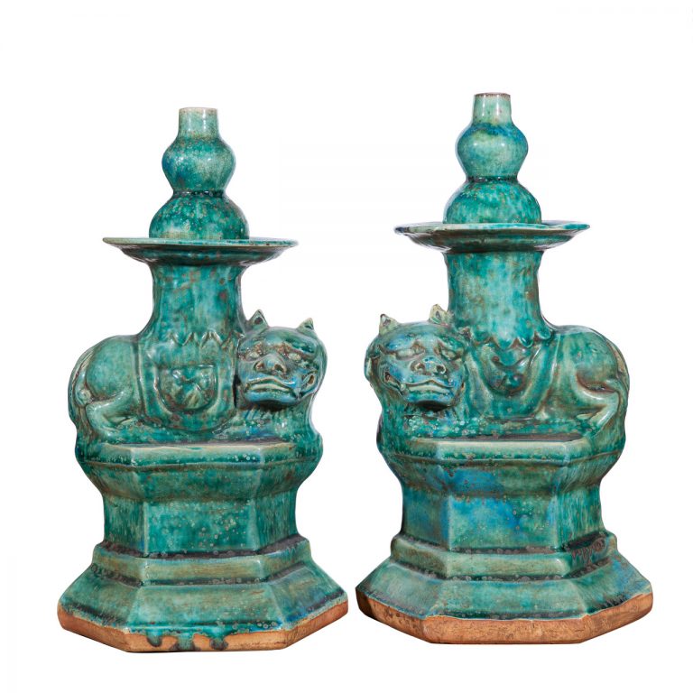 Speckled Green Lion Candle Holder Per Pair