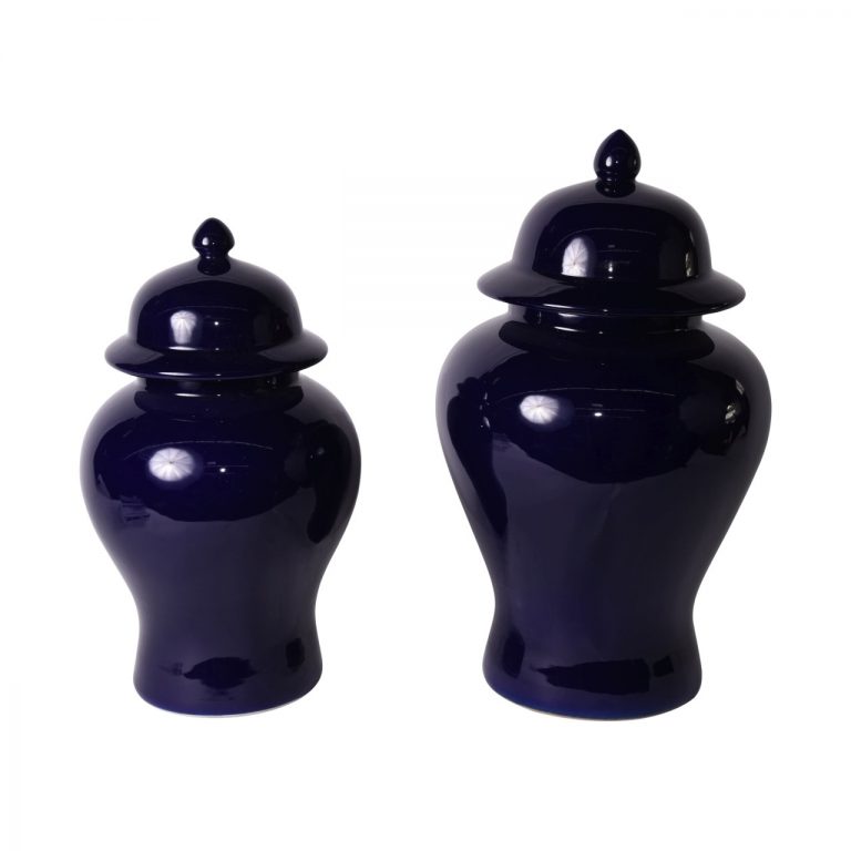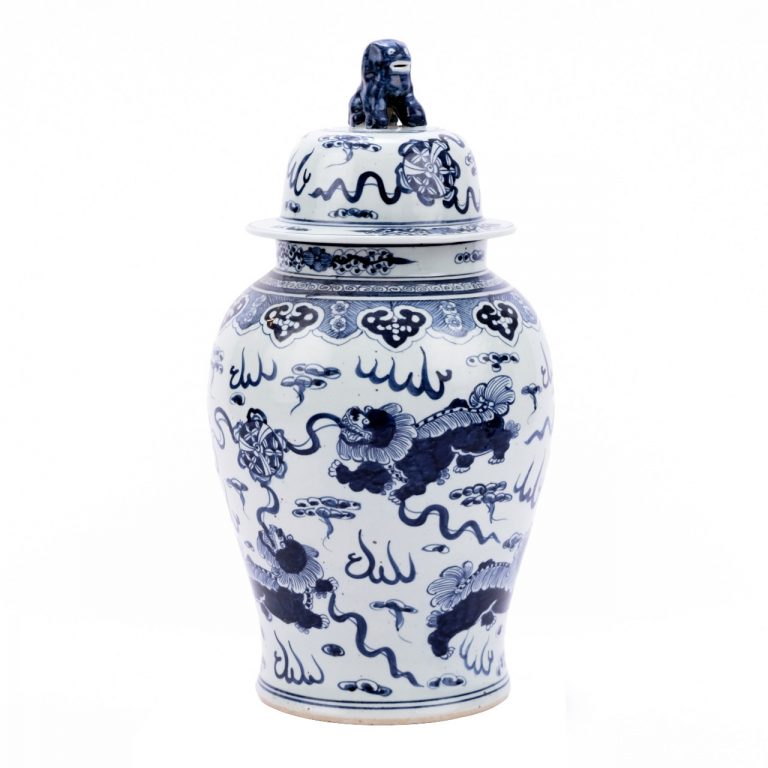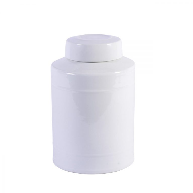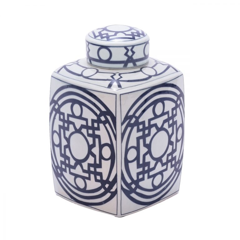 Blue & White Square Tea Jar With Pattern of Lines – Large