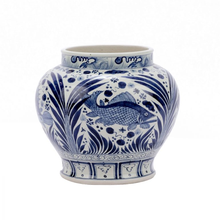 Blue & White Open Top Fish Jar