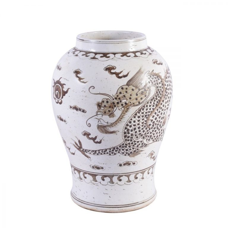 Brown Porcelain Hong Wu Flaring Rim Jar Dragon Motif