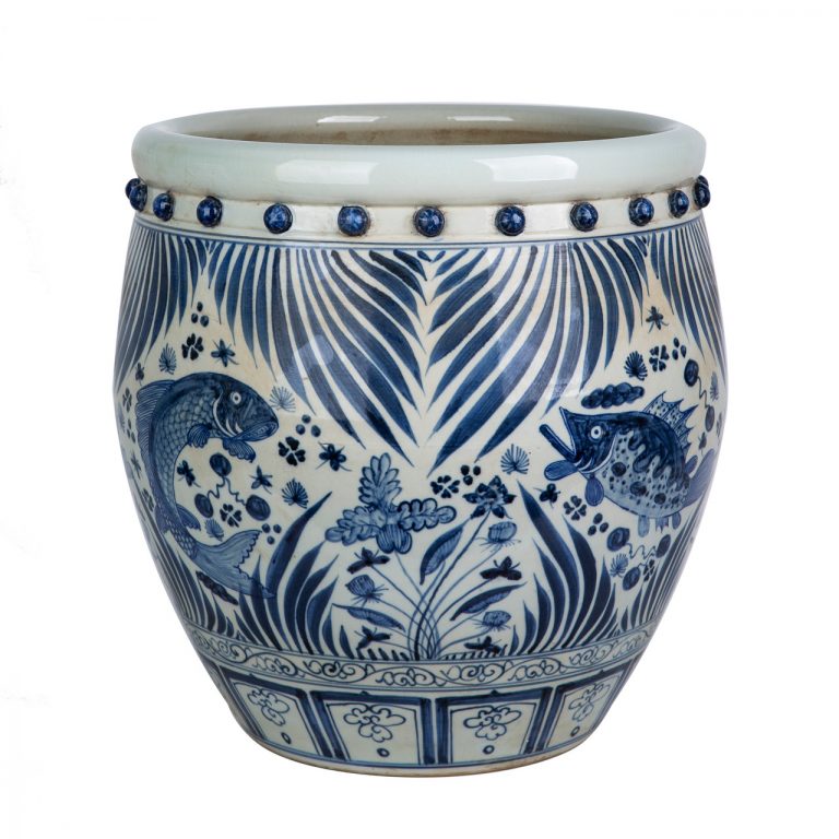 Blue And White Porcelain Drum Nail Fish Pot