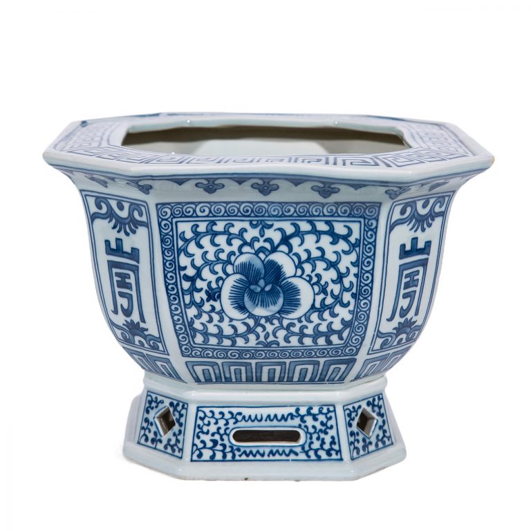 Blue And White Flower Bird Greek Key Cachepot