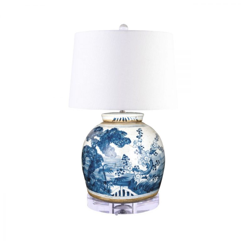 Blue And White Peking Opera Mask Porcelain Jar Table Lamp